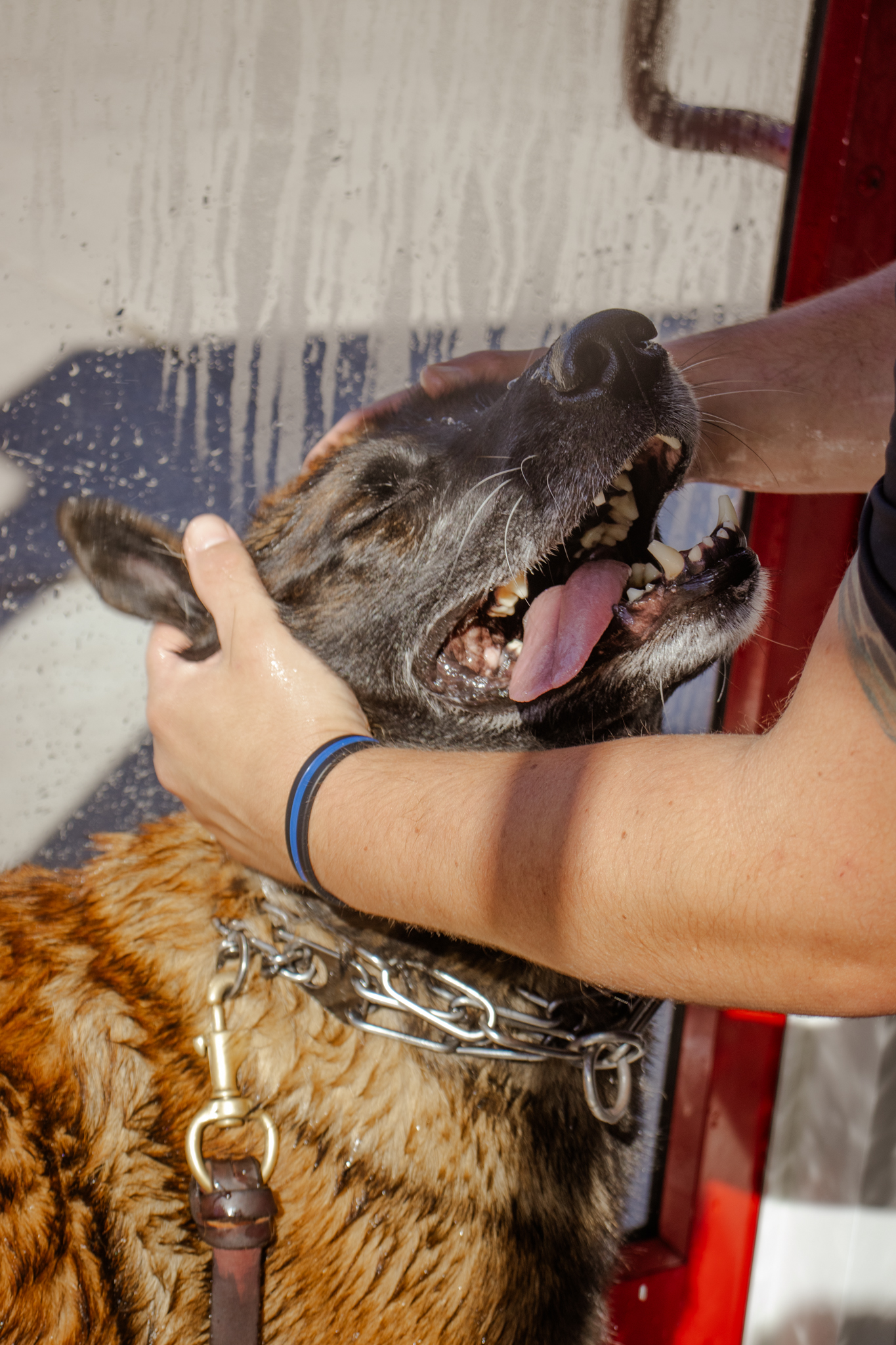- Tie your dog securely in the wash station: It's also a good time for a treat, so your dog begins to associate bathtime with something positive.